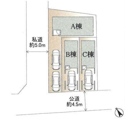 | 土地権利 | 所有権 | 接道 | 南西 幅員約 4.5m(公道) 北西 幅員約 5.0m(私道) | ||
