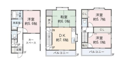 ★土地約46㎡建物約80㎡の3階建て4DK!