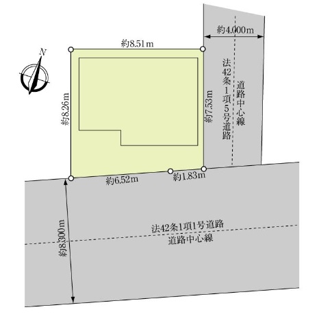 | 土地権利 | 所有権 | 接道 | 南 幅員約 8.3m(公道) 東 幅員約 4.0m(私道) | ||